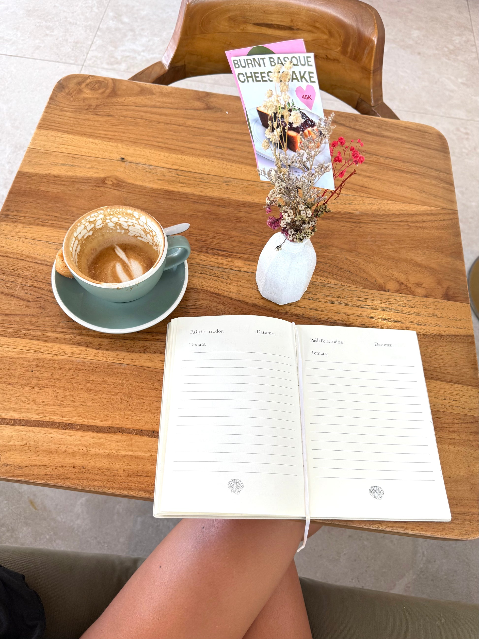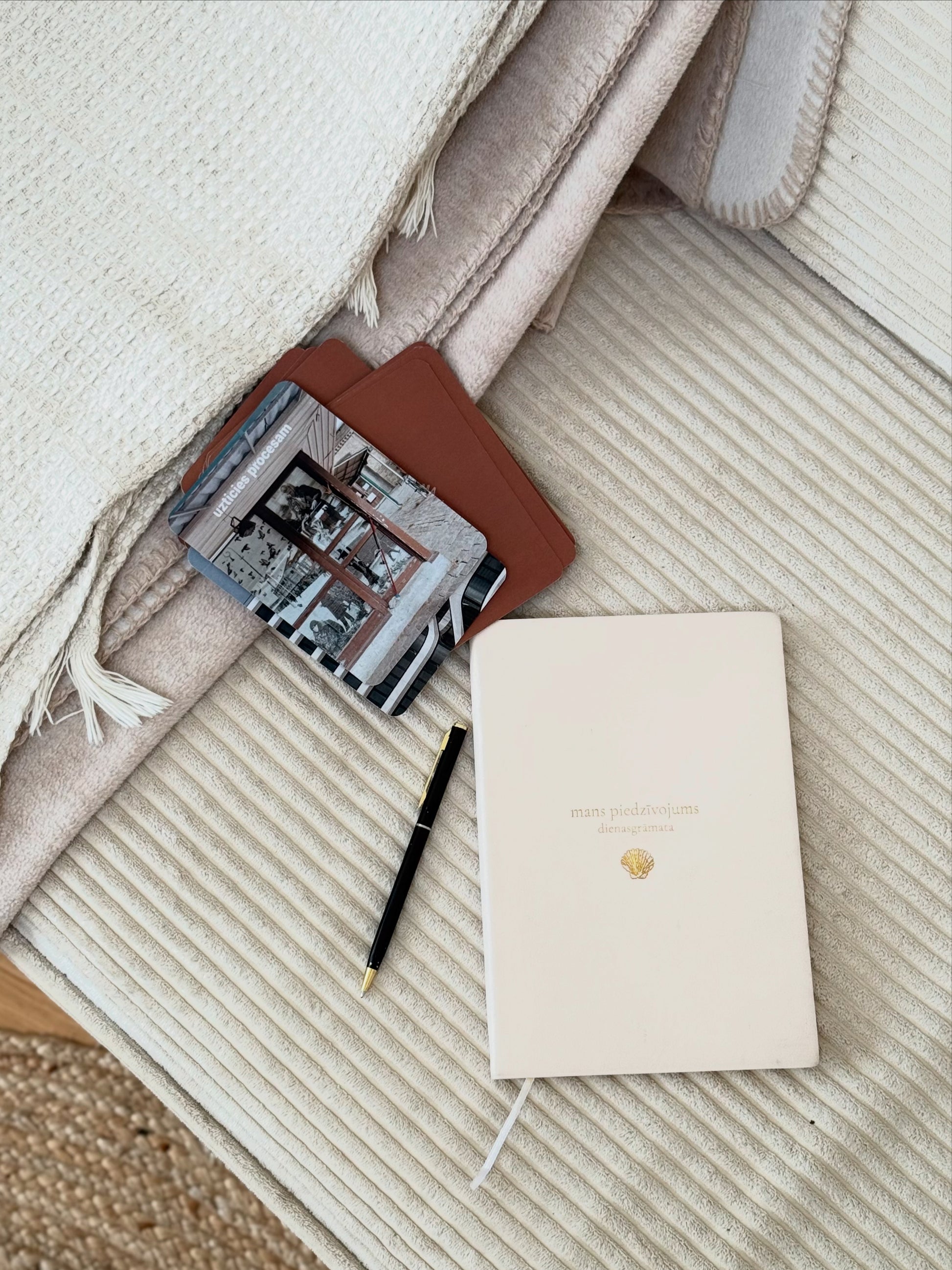 Maigi bēšā klade, kas sevī nes okeāna mieru, brīvību un dziļumu. Tā ir radīta kā īpaša telpa sievietei, kur pierakstīt savus iekšējos un ārējos piedzīvojumus – sajūtas, vēlmes, sapņus un ceļojumus.